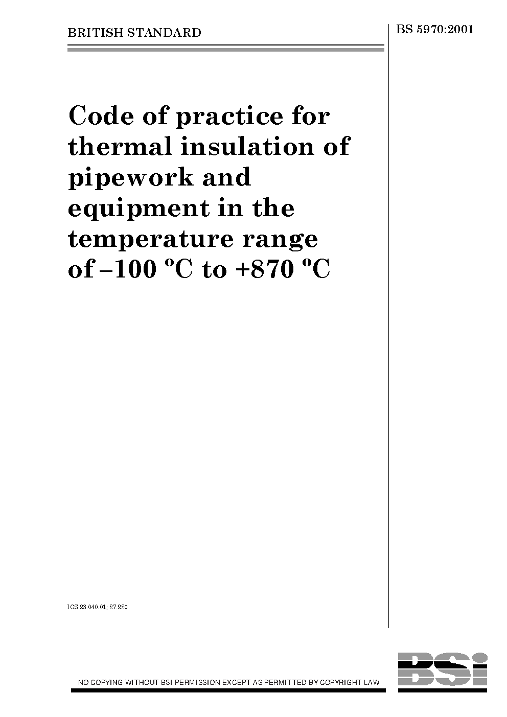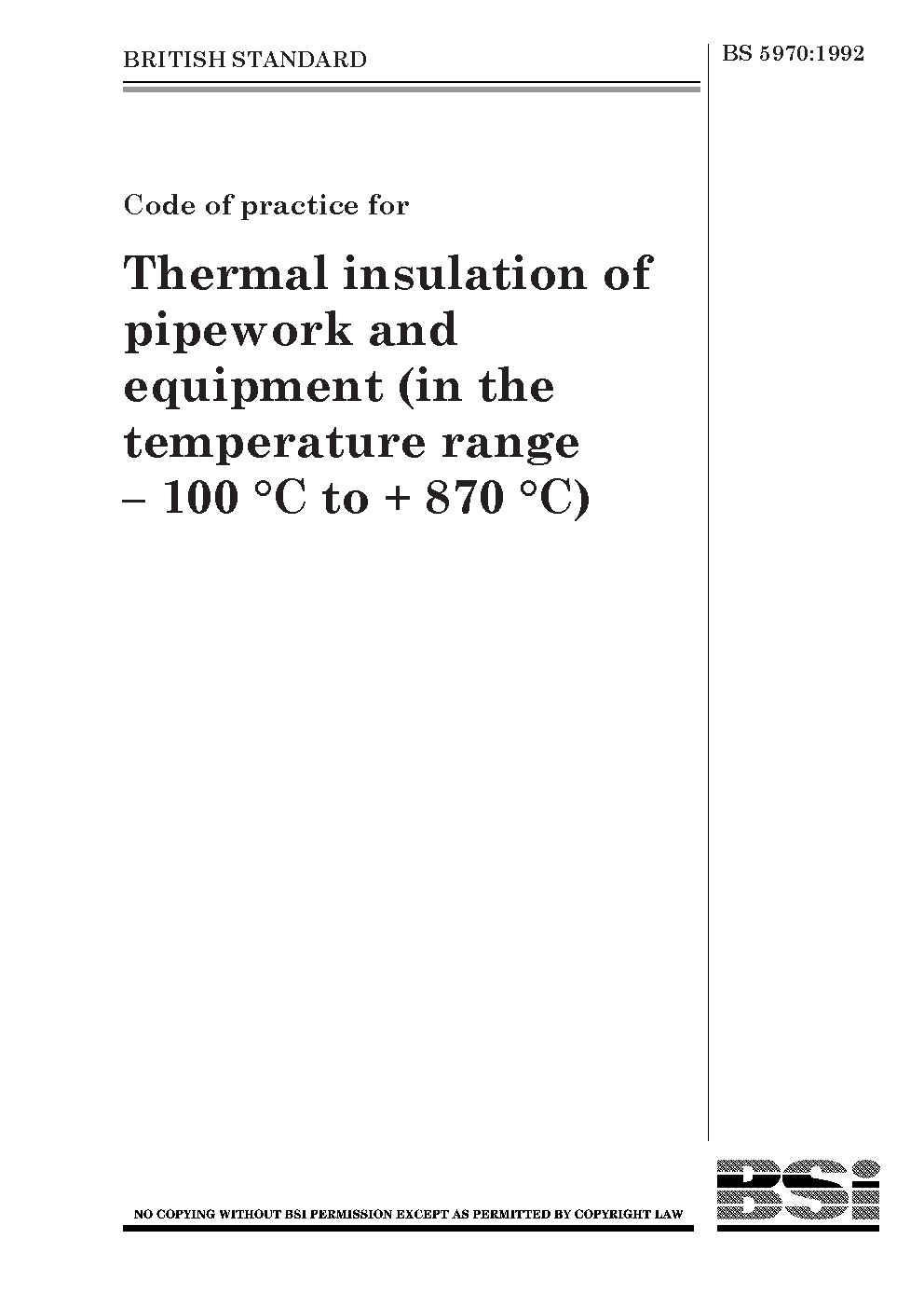 Code of practice for thermal insulation of pipework and equipment (in the temperature range -100°C to +870°C)