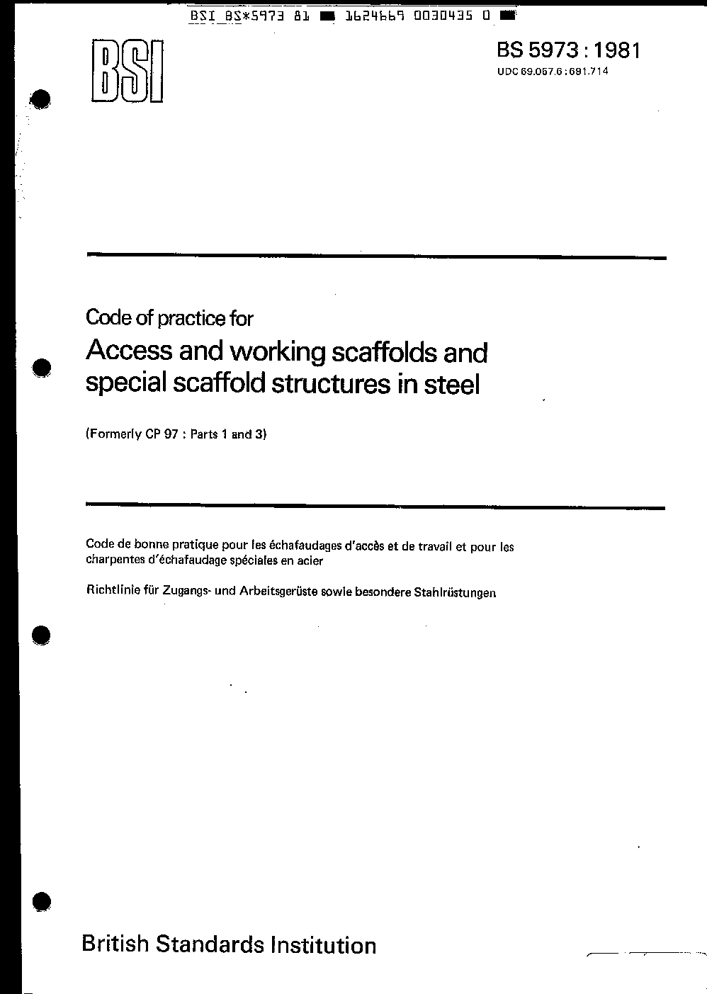Code of practice for access and working scaffolds and special scaffold structures in steel