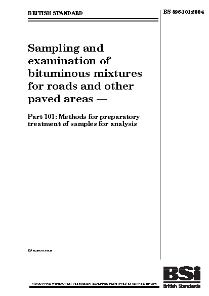 Sampling and examination of bituminous mixtures for roads other paved areas Methods preparatory treatments samples analysis