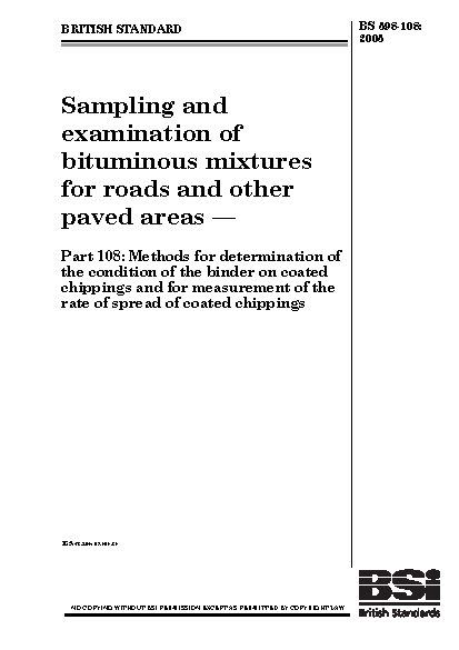 Sampling and examination of bituminous mixtures for roads other paved areas Methods determination the condition binder on coated chippings measurement rate spread