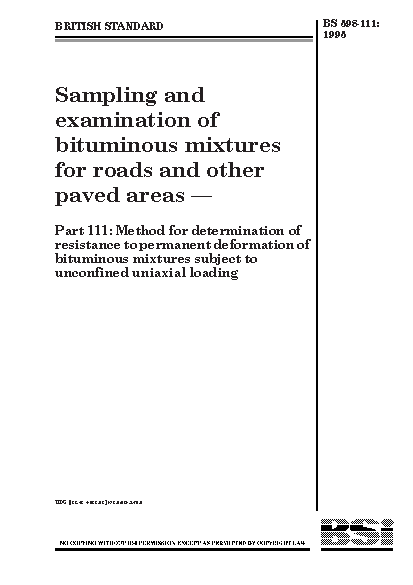 Sampling and examination of bituminous mixtures for roads other paved areas Method determination resistance to permanent deformation subject unconfined uniaxial loading