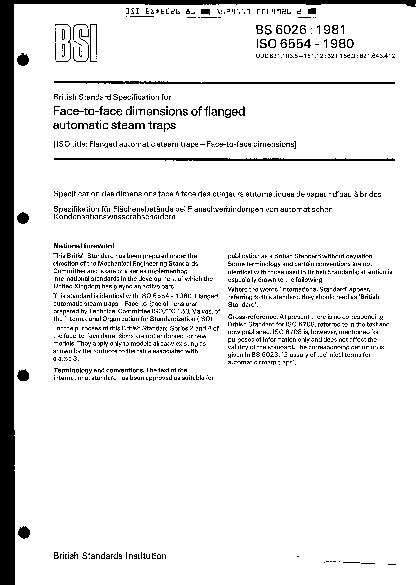 Specification for face-to-face dimensions of flanged automatic steam traps