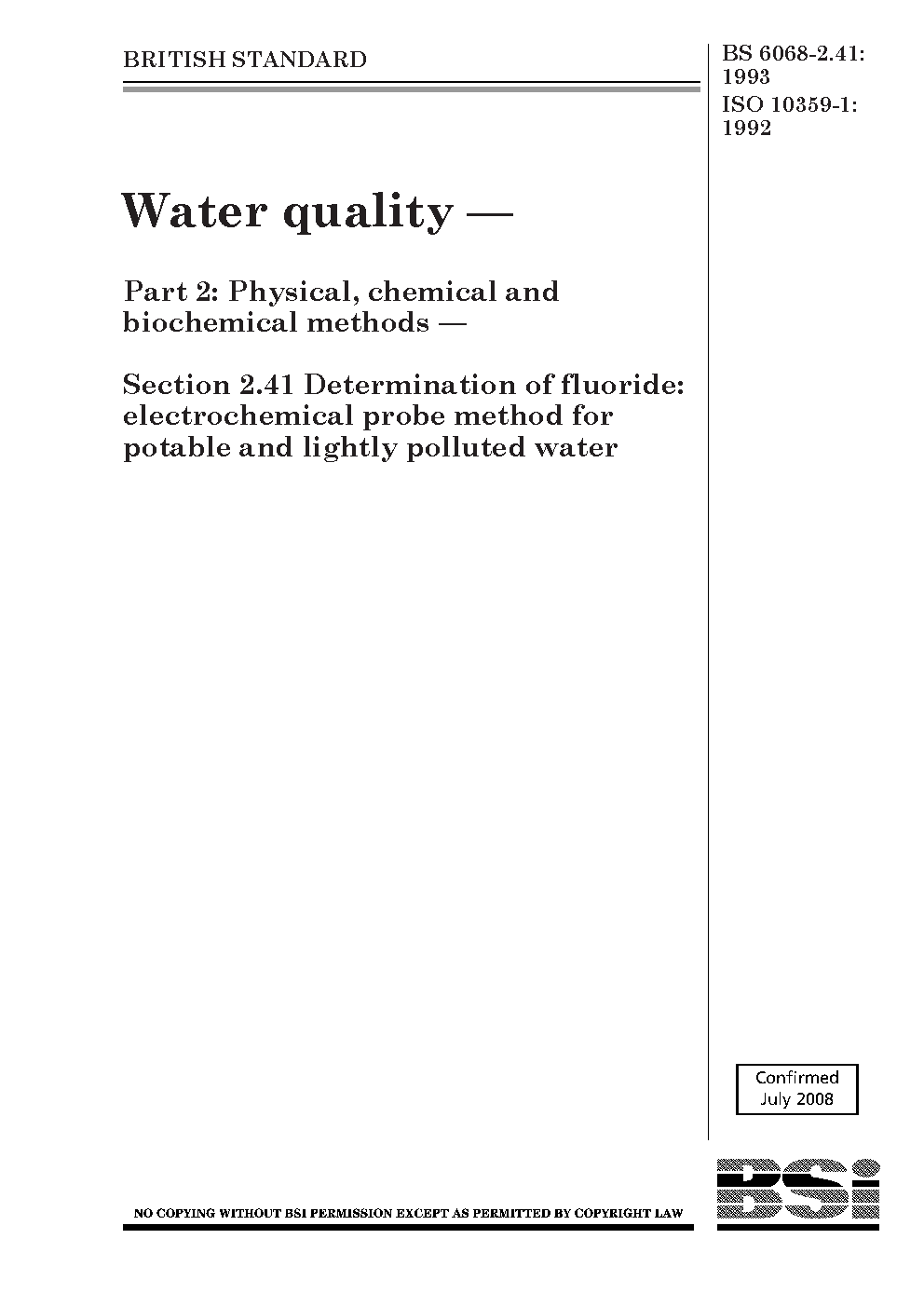 Water quality. Physical, chemical and biochemical methods Determination of fluoride: electrochemical probe method for potable lightly polluted water