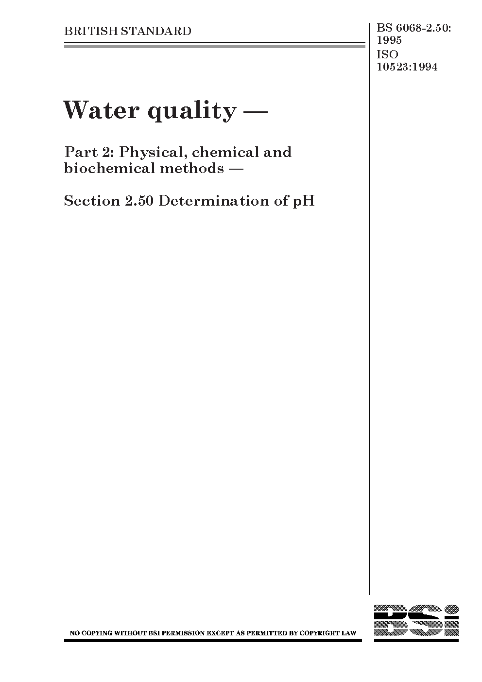 Water quality. Physical, chemical and biochemical methods Determination of pH