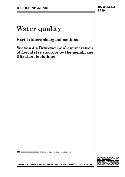 Water quality. Microbiological methods Detection and enumeration of faecal streptococci by the membrane filtration technique