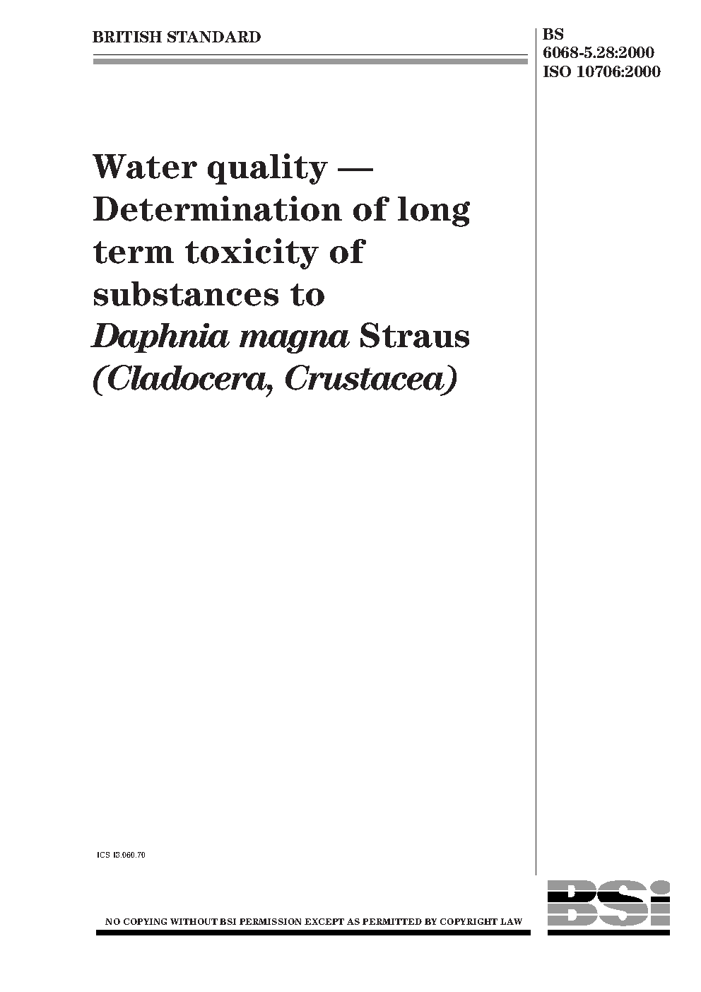 Water quality Determination of long term toxicity substances to Daphnia magna Straus (Cladocera, Crustacea)