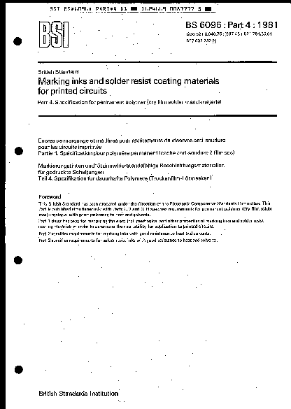 Marking inks and solder resist coating materials for printed circuits Specification permanent polymer (dry film mask) material