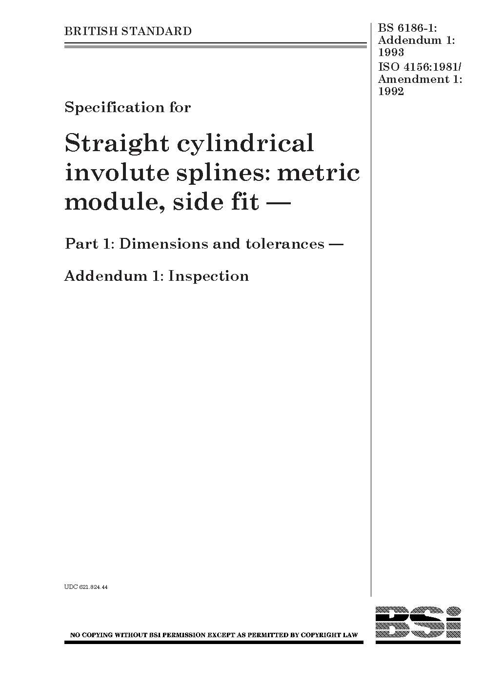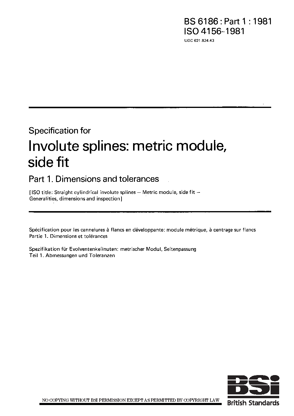 Specification for straight cylindrical involute splines: metric module, side fit Dimensions and tolerances