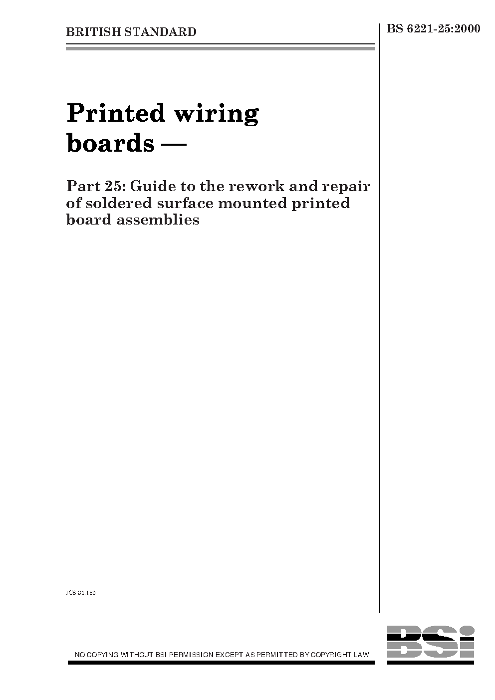 Printed wiring boards Guide to the rework and repair of soldered surface mounted printed board assemblies