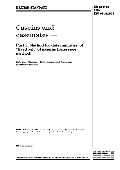 Caseins and caseinates Method for determination of 'fixed ash' caseins (reference method)