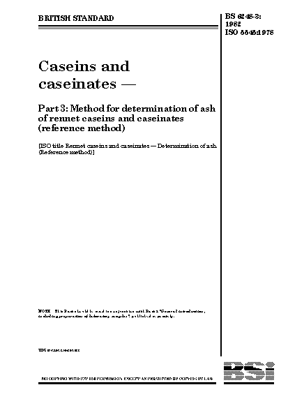Caseins and caseinates Method for determination of ash rennet caseins (reference method)