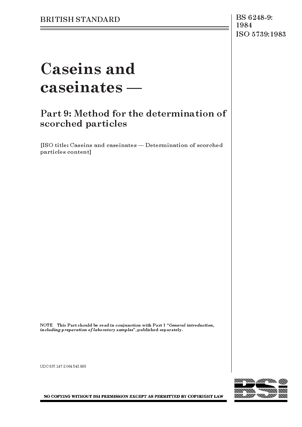 Caseins and caseinates Method for the determination of scorched particles