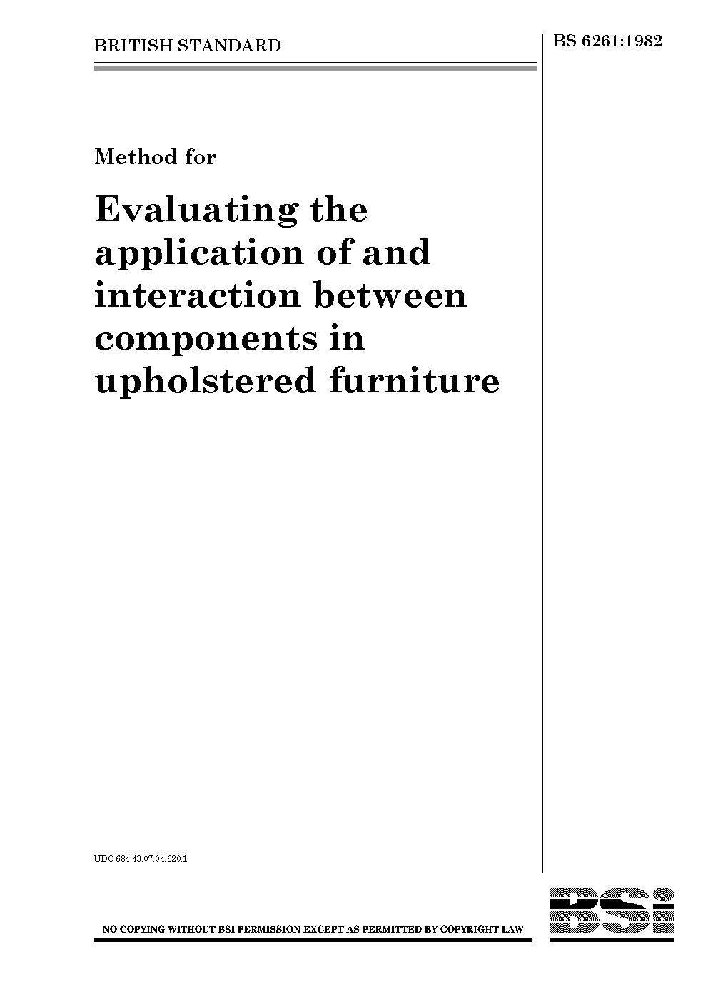 Components;Couches;Performance testing;Seating;Defects;Assembling;Chairs;Test equipment;Upholstered furniture;Furniture;Dynamic loading;Mechanical testing;Indentations