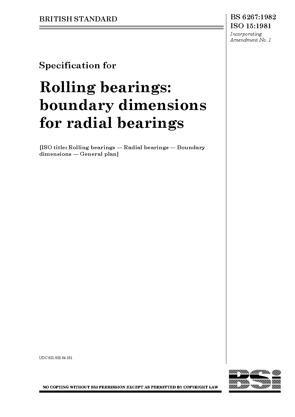 Specification for rolling bearings: boundary dimensions for radial bearings