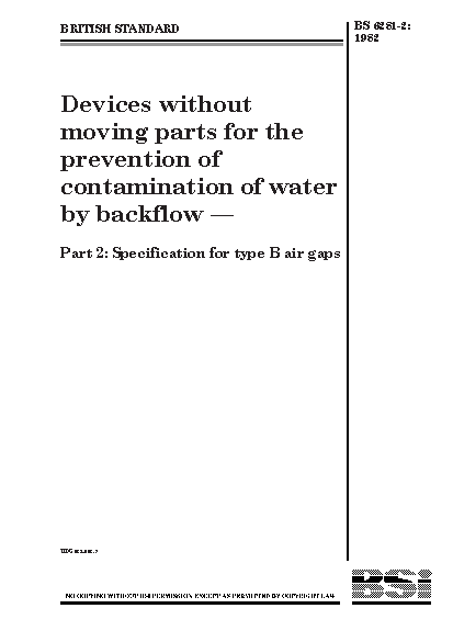 Devices without moving parts for the prevention of contamination water by backflow Specification type B air gaps