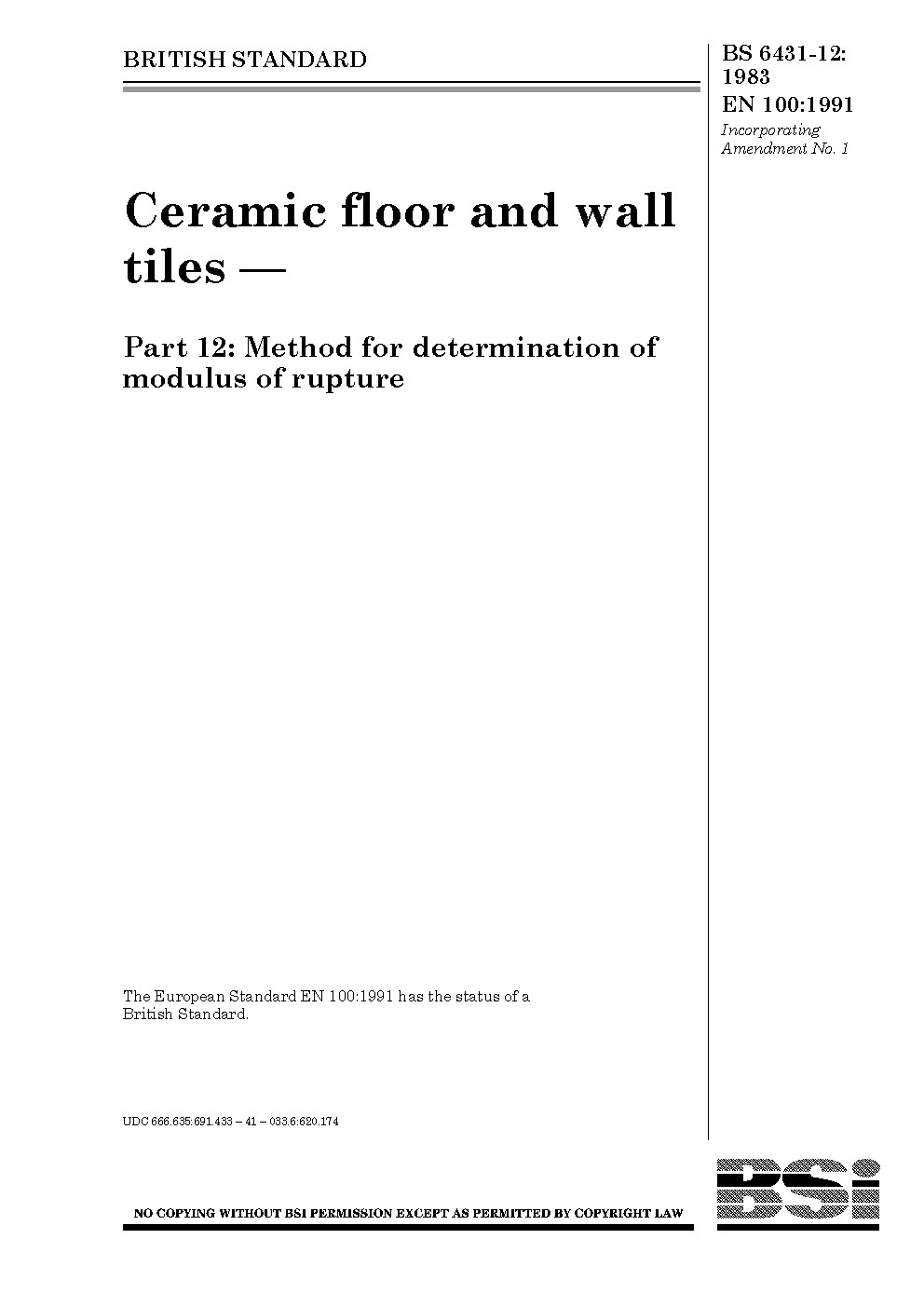 Ceramic floor and wall tiles Method for determination of modulus rupture