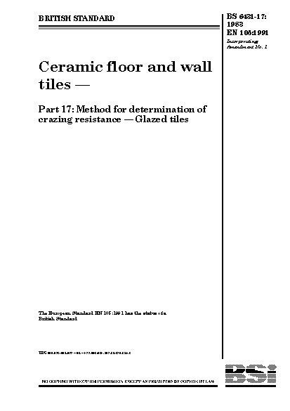 Ceramic floor and wall tiles Method for determination of crazing reistance. Glazed
