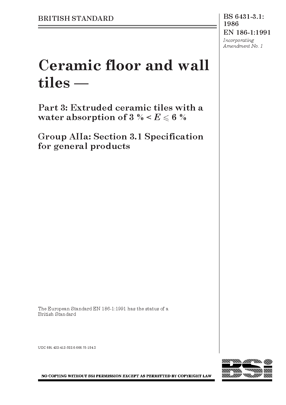 Ceramic floor and wall tiles. Extruded ceramic tiles with a water absorption of 3% < E = 6%. Group AIIa Specification for general products