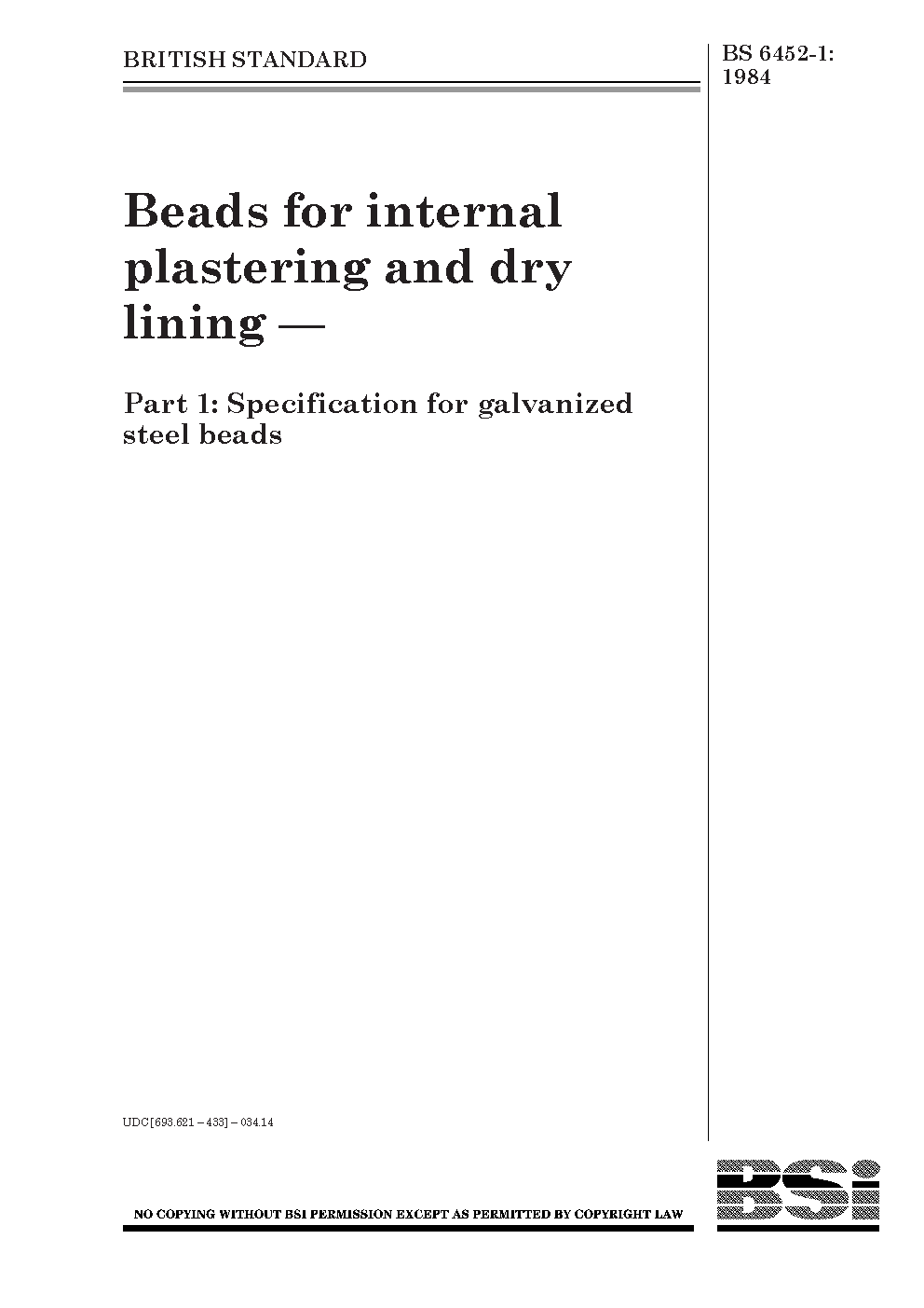 Beads for internal plastering and dry lining Specification galvanized steel beads