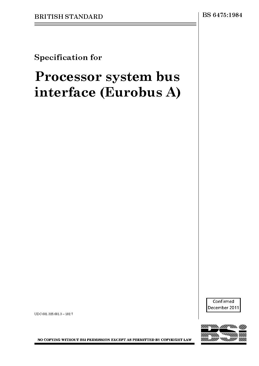 Specification for processor system bus interface (Eurobus A)