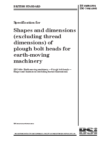 Specification for shapes and dimensions (excluding thread dimensions) of plough bolt heads for earth-moving machinery