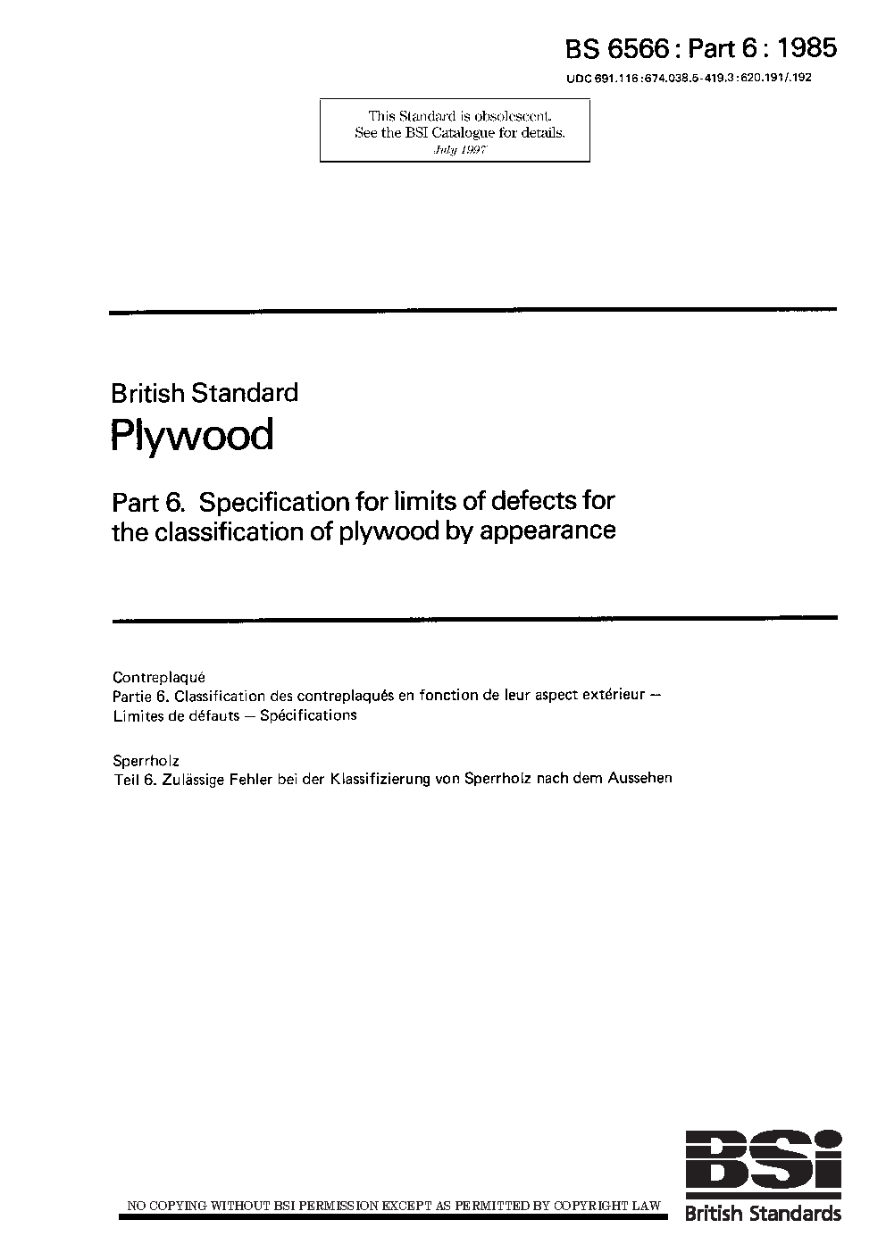 Plywood Specification for limits of defects the classification plywood by appearance