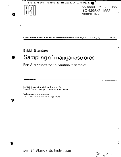 Sampling of manganese ores Methods for preparation samples