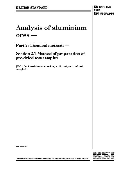 Analysis of aluminium ores. Chemical methods Method preparation pre-dried test samples