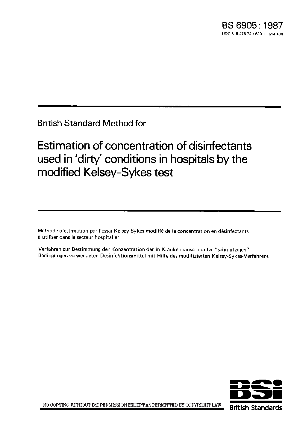 Method for estimation of concentration of disinfectants used in 'dirty' conditions in hospitals by the modified Kelsey-Sykes test