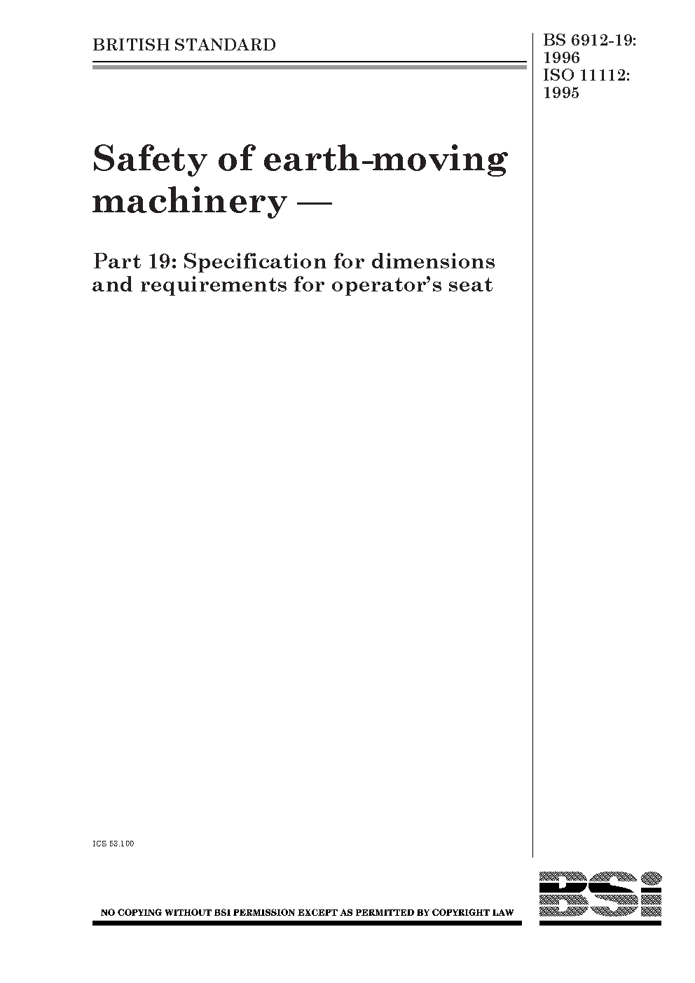 Vehicle seating;Equipment safety;Vehicle components;Seating;Dimensions;Ergonomics;Safety measures;Earth-moving equipment;Materials handling equipment;Seat index point;Construction equipment;Operators (personnel)