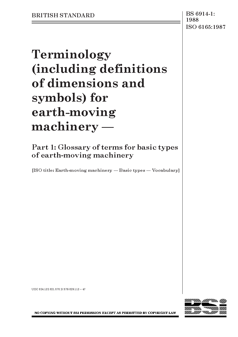 Terminology (including definitions of dimensions and symbols) for earth-moving machinery Glossary terms basic types