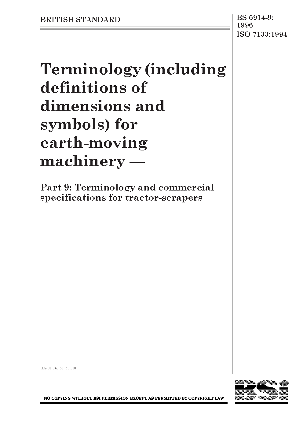 Terminology (including definitions of dimensions and symbols) for earth-moving machinery commercial specifications tractor-scrapers