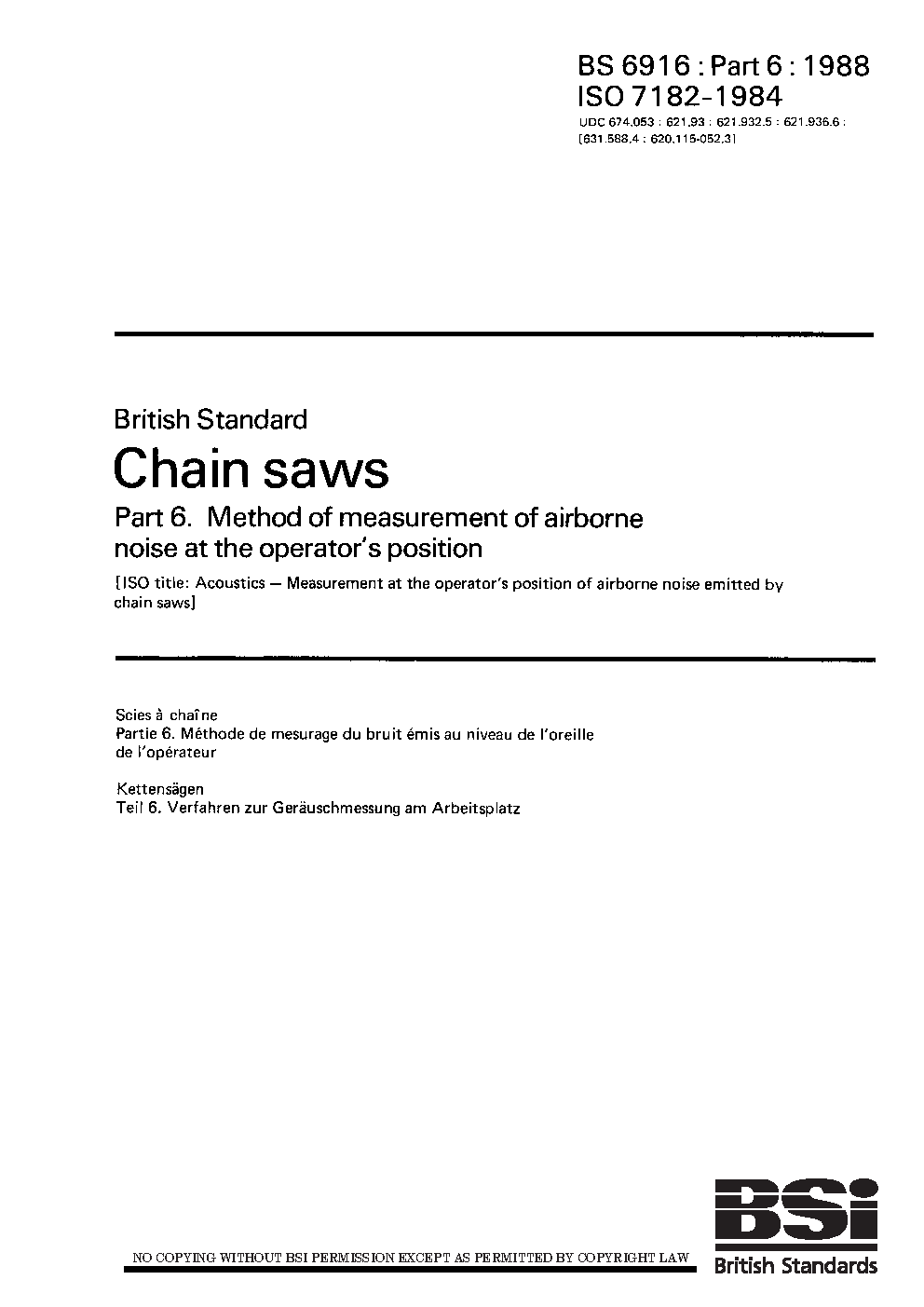 Chain saws Method of measurement airborne noise at the operator's position
