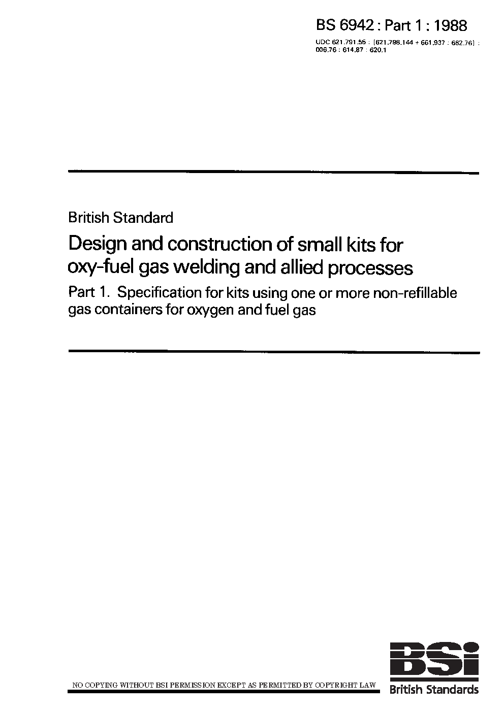 Design and construction of small kits for oxy-fuel gas welding allied processes Specification using one or more non-refillable containers oxygen fuel