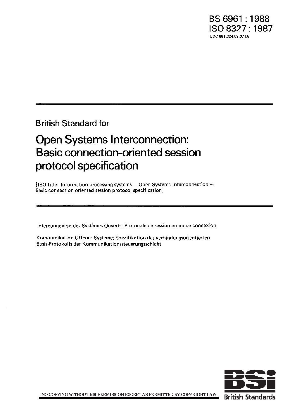 Open Systems Interconnection: basic connection-oriented session protocol specification