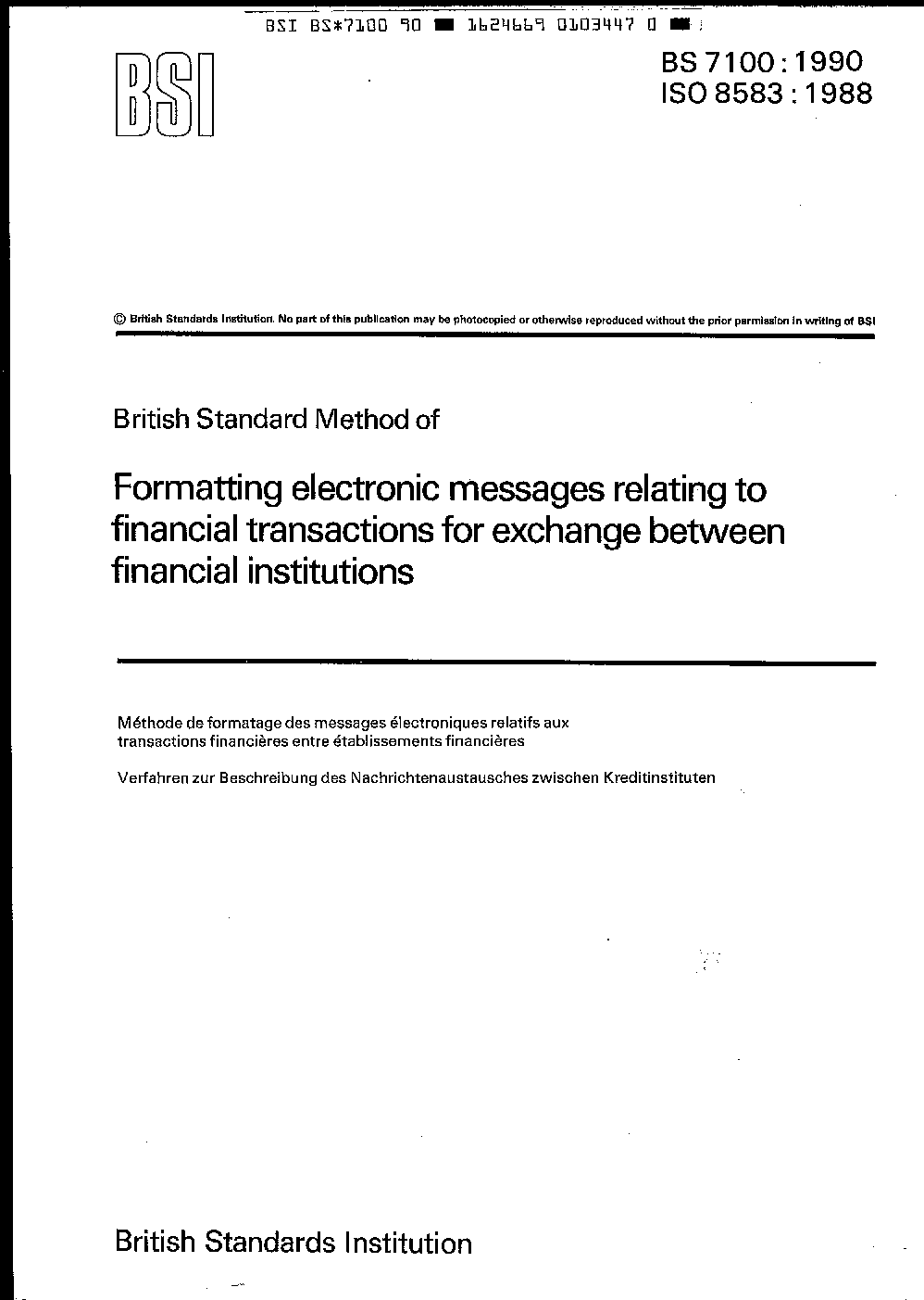 Method of formatting electronic messages relating to financial transactions for exchange between financial institutions