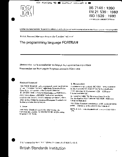 Memorandum on the Standardization of the programming language FORTRAN