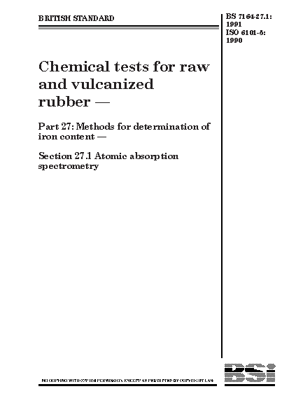 Chemical tests for raw and vulcanized rubber. Methods determination of iron content Atomic absorption spectrometry