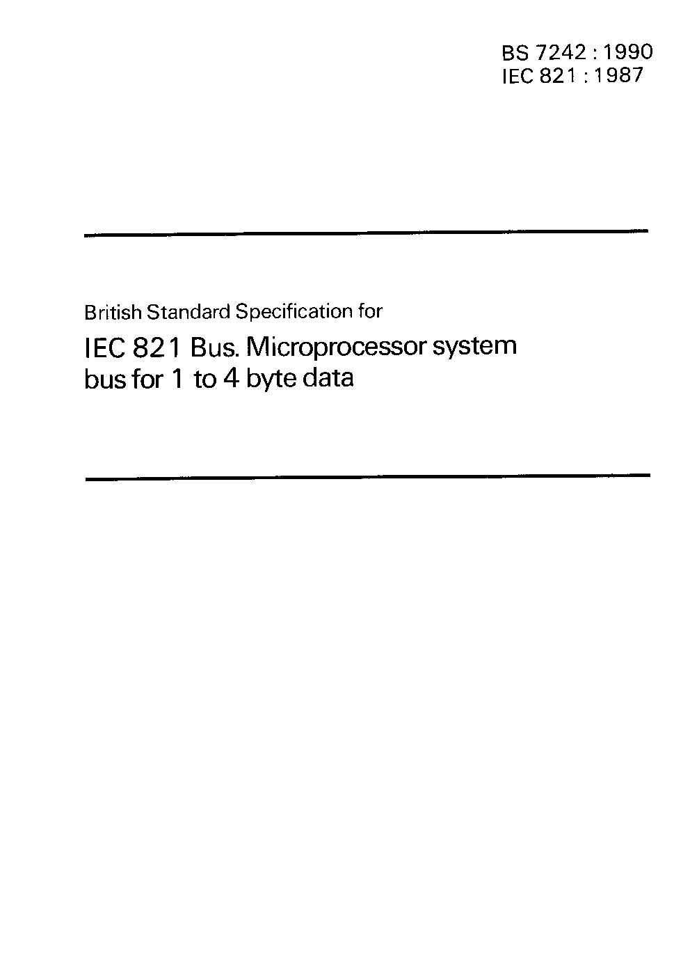 Specification for IEC 821 bus: microprocessor system bus for 1 to 4 byte data