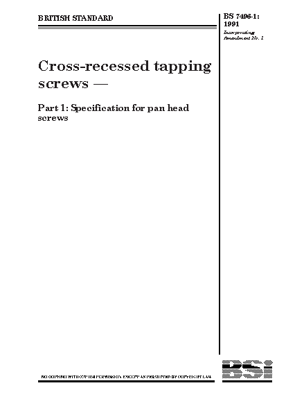 Cross-recessed tapping screws Specification for pan head