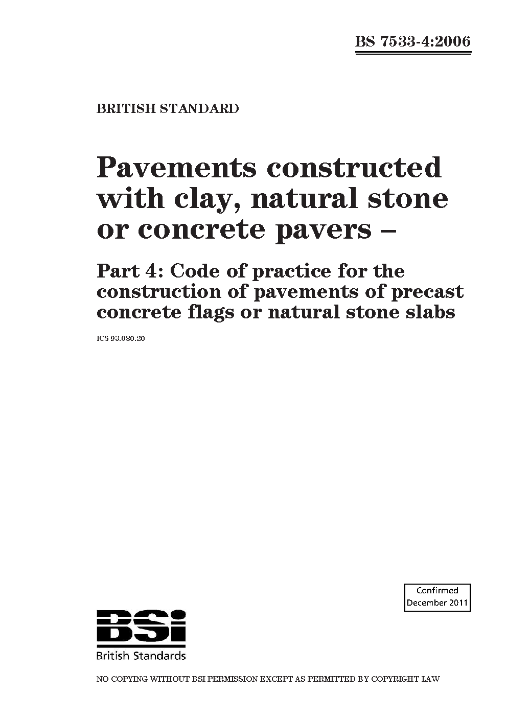 Pavements constructed with clay, natural stone or concrete pavers Code of practice for the construction pavements precast flags slabs