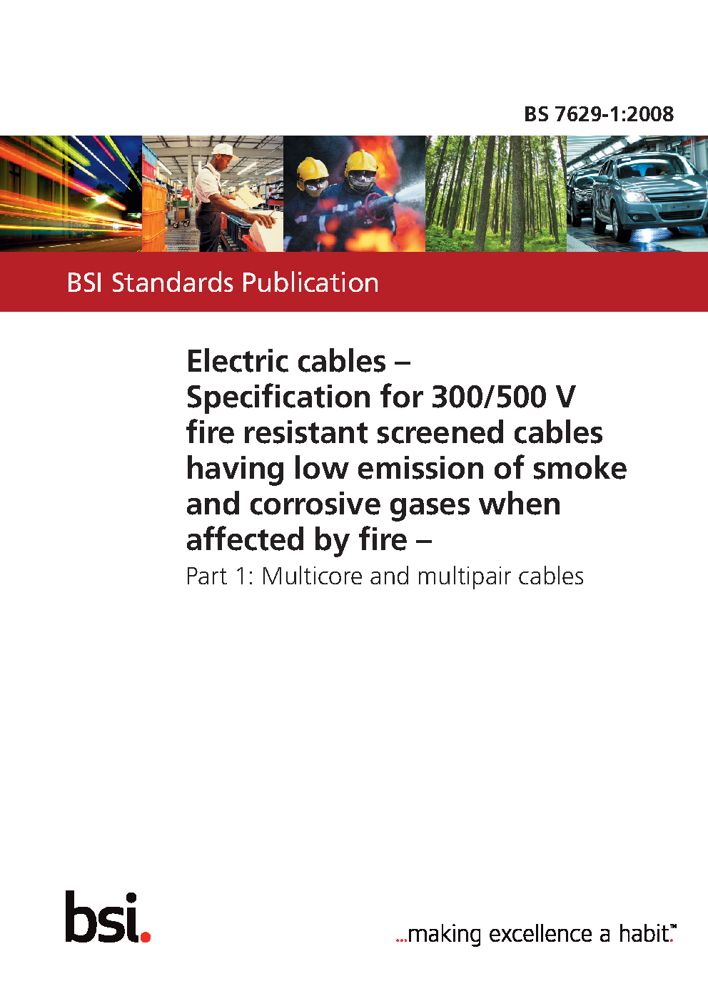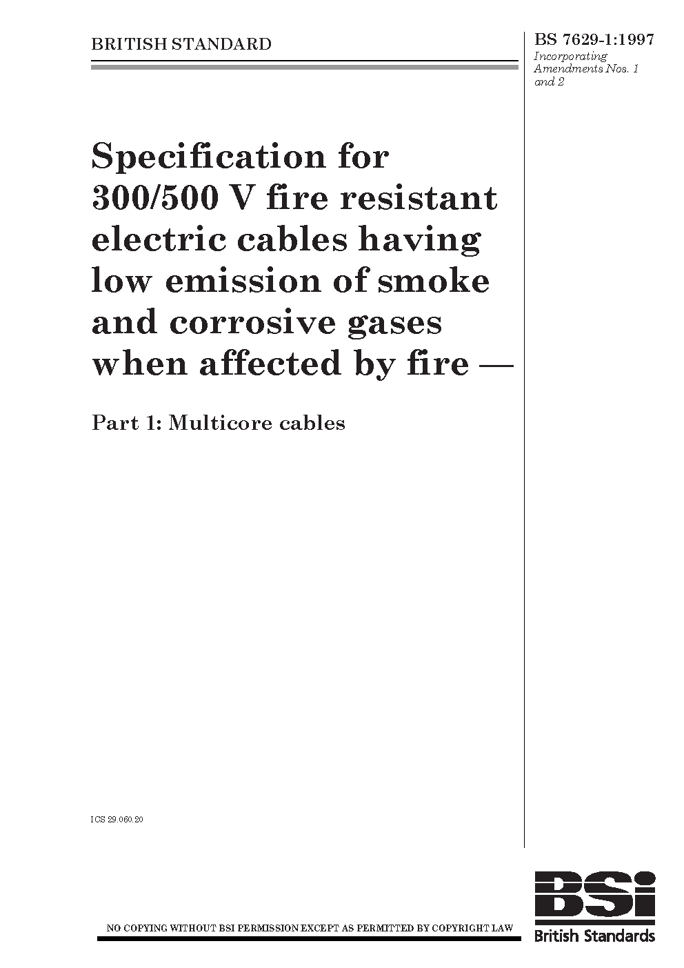 Electric cables. Specification for 300/500 V fire resistant, screened, fixed installation cables having low emission of smoke and corrosive gases when affected by Multicore