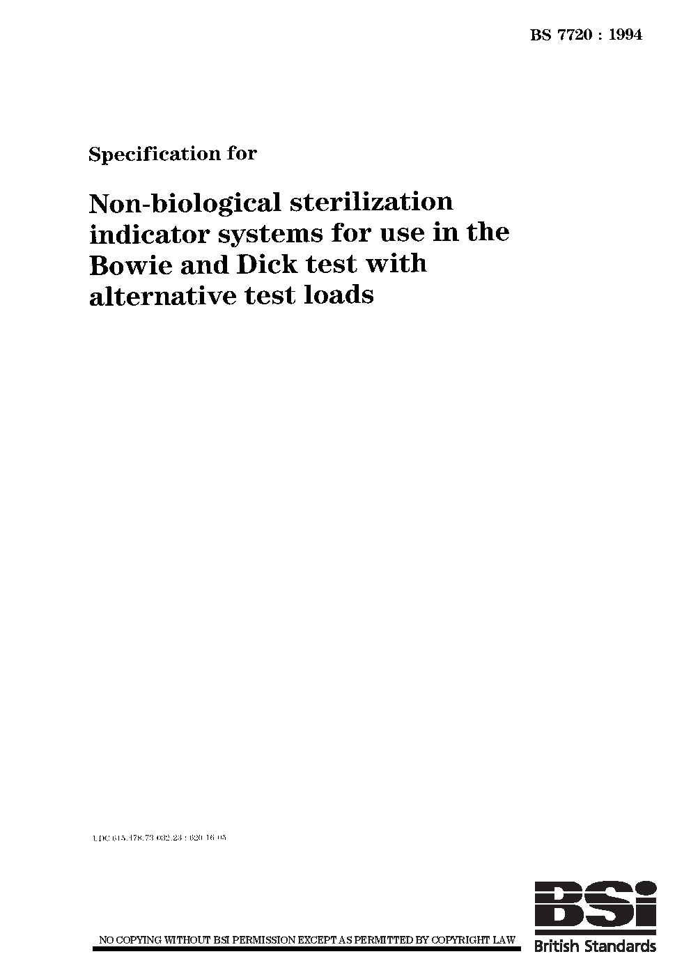 Specification for non-biological sterilization indicators equivalent to the Bowie and Dick test