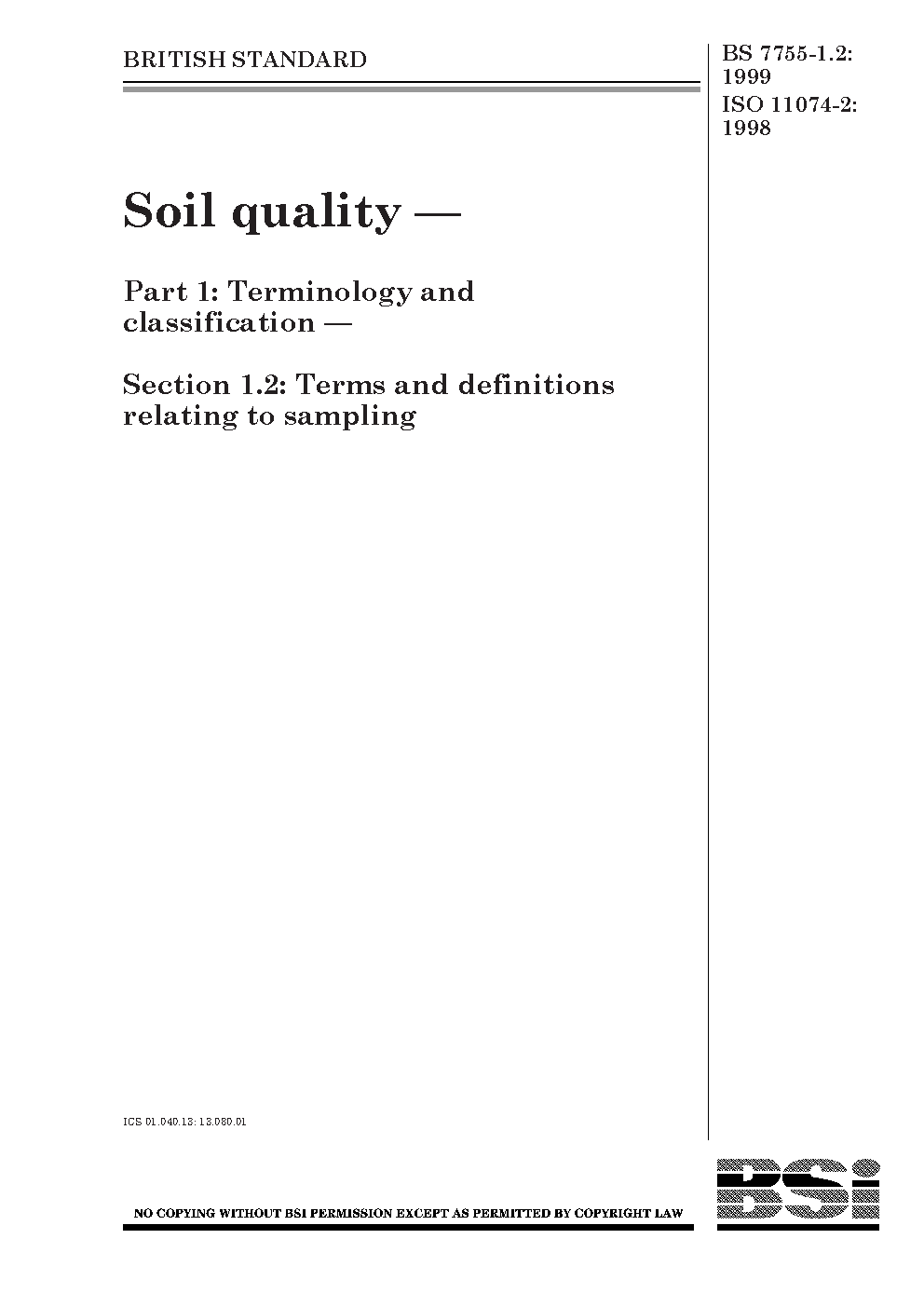 Soil quality. Terminology and classification Terms definitions relating to sampling