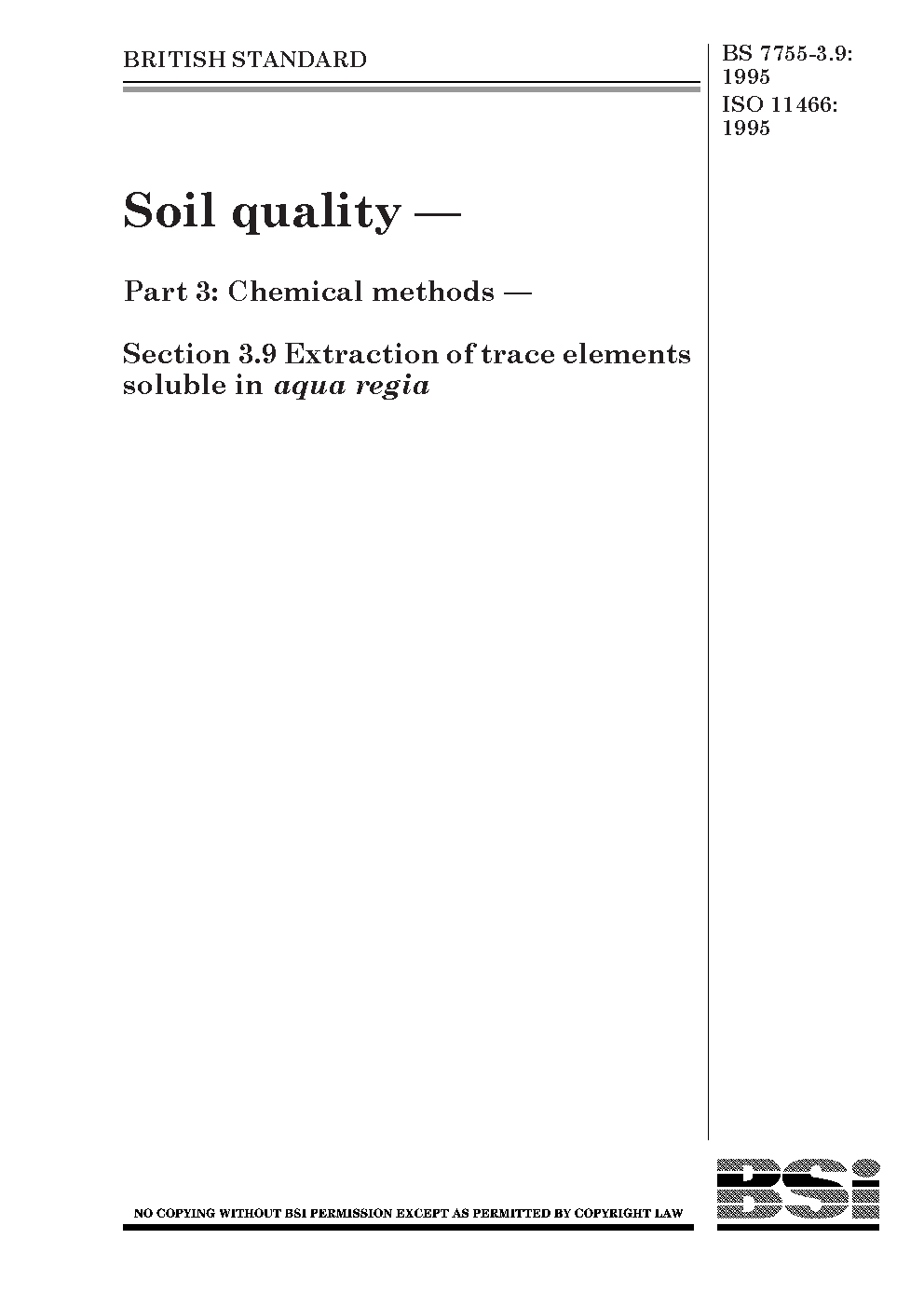 Soil quality. Chemical methods Extraction of trace elements soluble in aqua regia