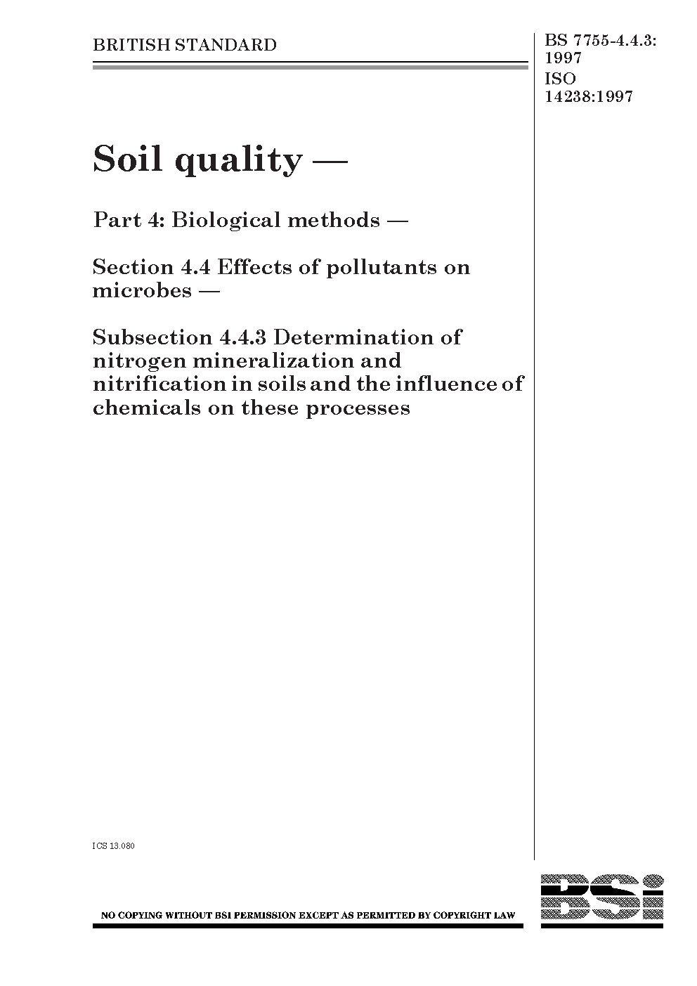 Soil quality. Biological methods. Effects of pollutants on microbes Determination nitrogen mineralization and nitrification in soils the influence chemicals these processes