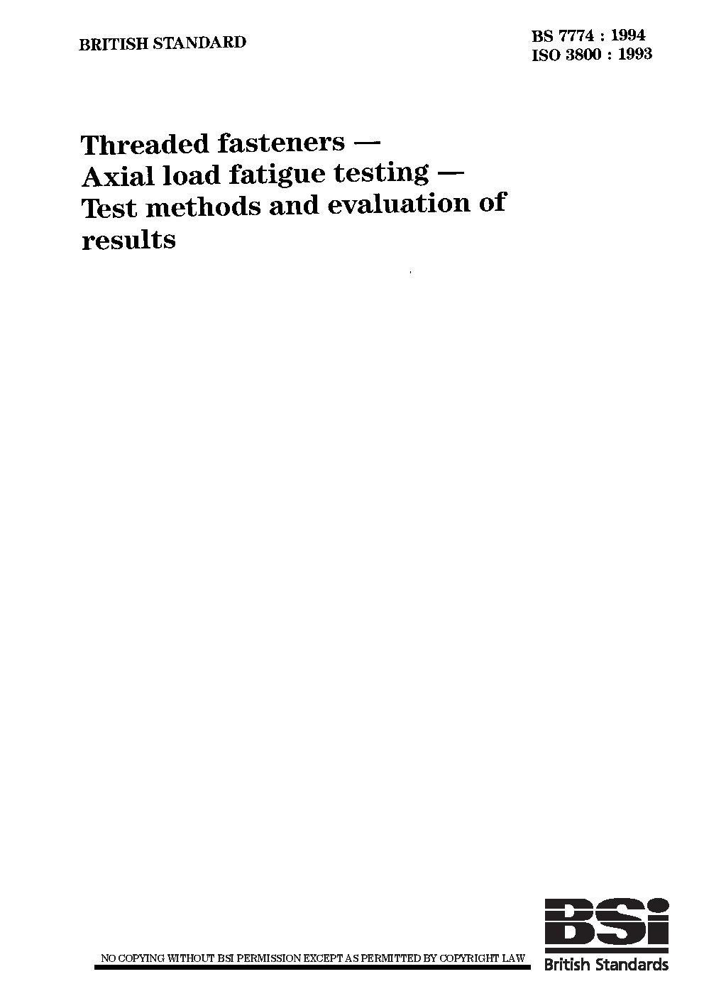 Threaded fasteners. Axial load fatigue testing. Test methods and evaluation of results