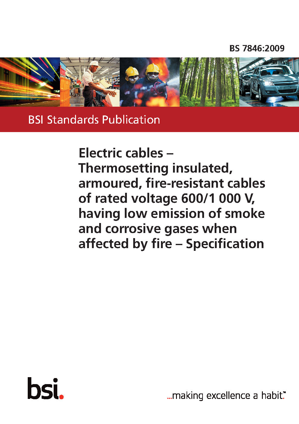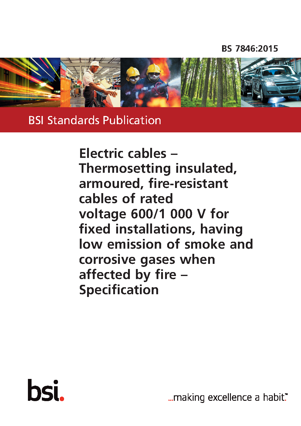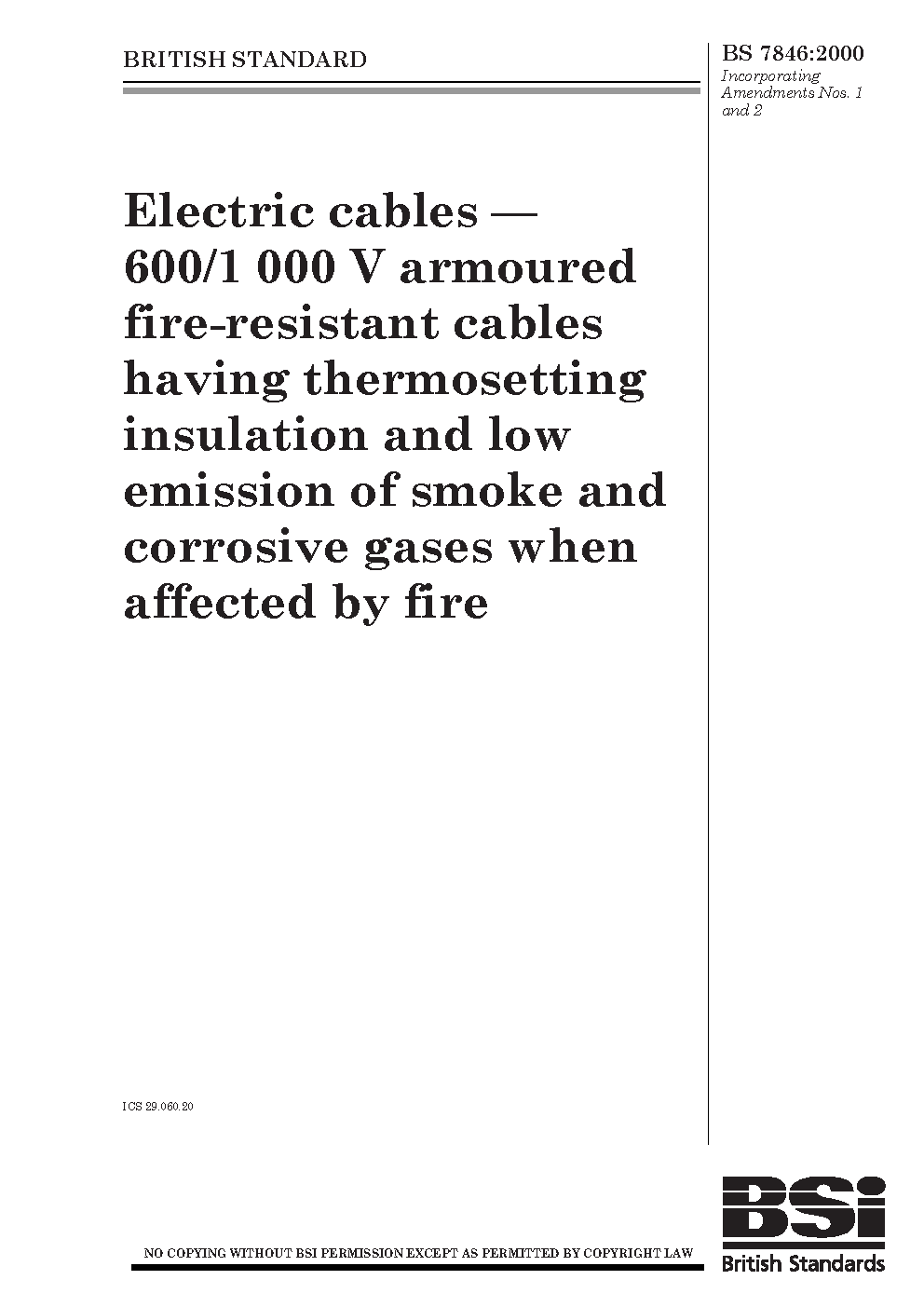 Electric cables. Thermosetting insulated, armoured, fire-resistant cables of rated voltage 600/1 000 V for fixed installations, having low emission of smoke and corrosive gases when affected by fire. Specification