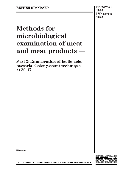 Methods for microbiological examination of meat and products Enumeration lactic acid bacteria. Colony-count technique at 30°C