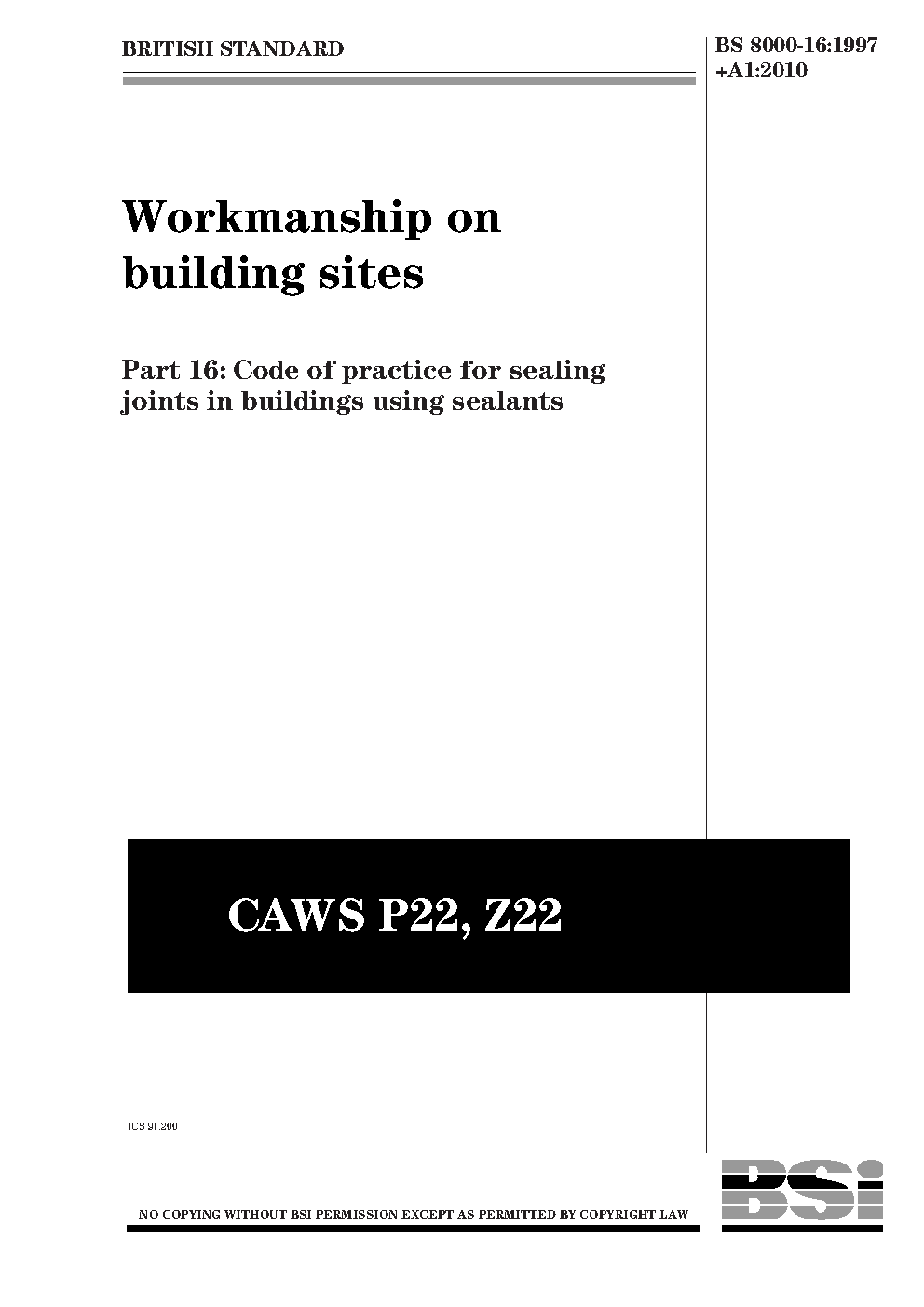 Workmanship on building sites Code of practice for sealing joints in buildings using sealants